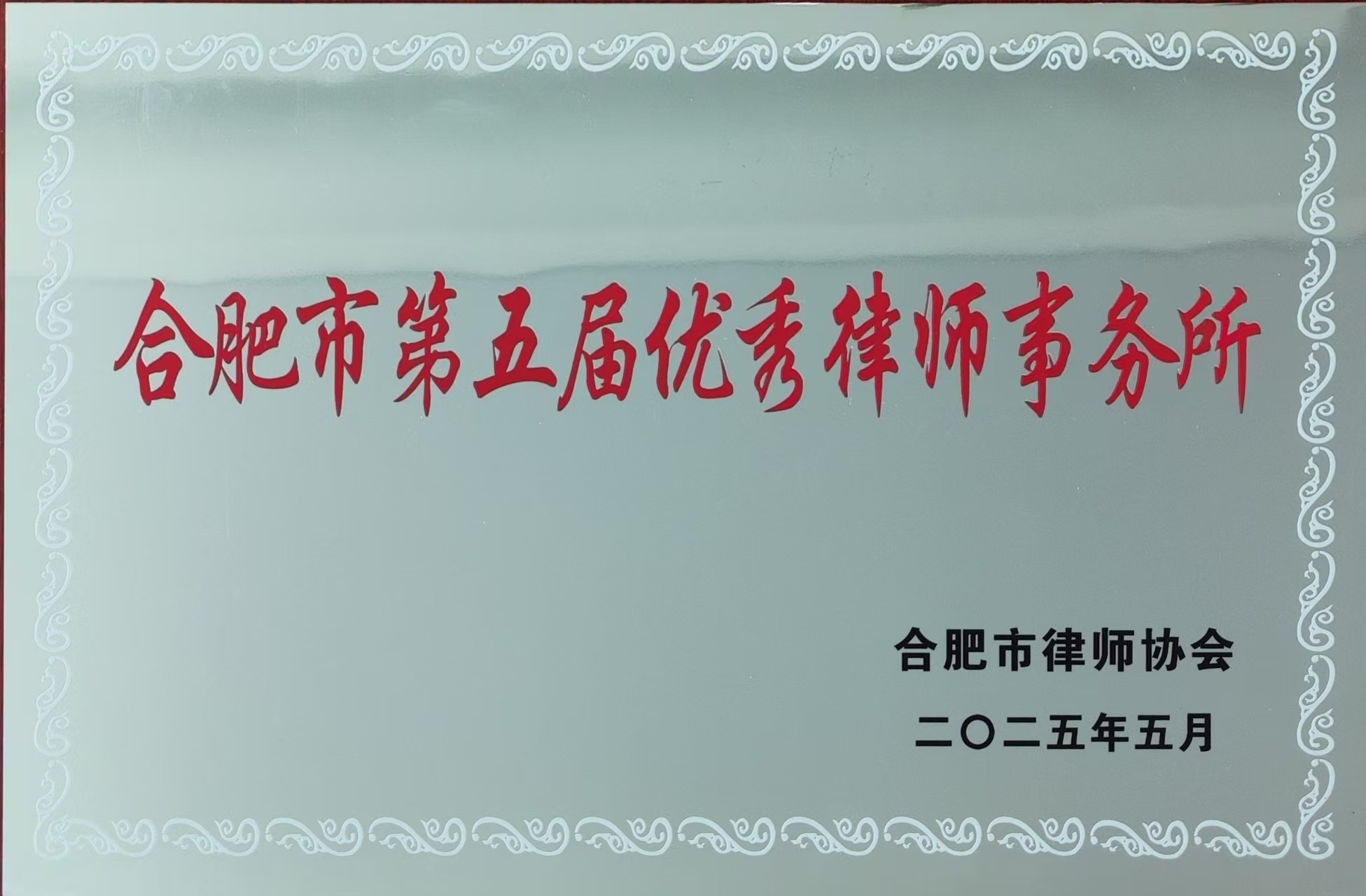 2025年5月25日,合肥市第六届律师代表大会第二次会议顺利召开。会议通报了市律师行业第五届优秀(含十佳)系列评选表彰情况。本所荣获“合肥市第五届优秀律师事务所”称号,张行春律师荣获“合肥市第五届优秀公益律师”称号。